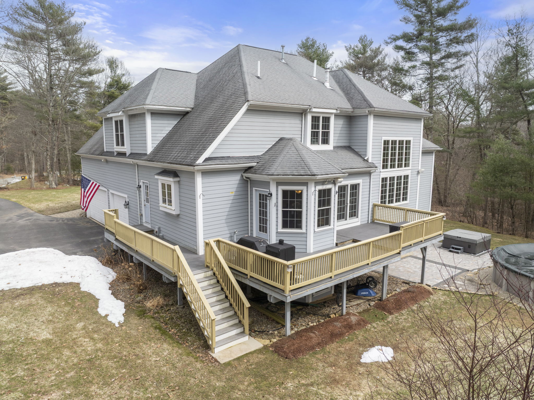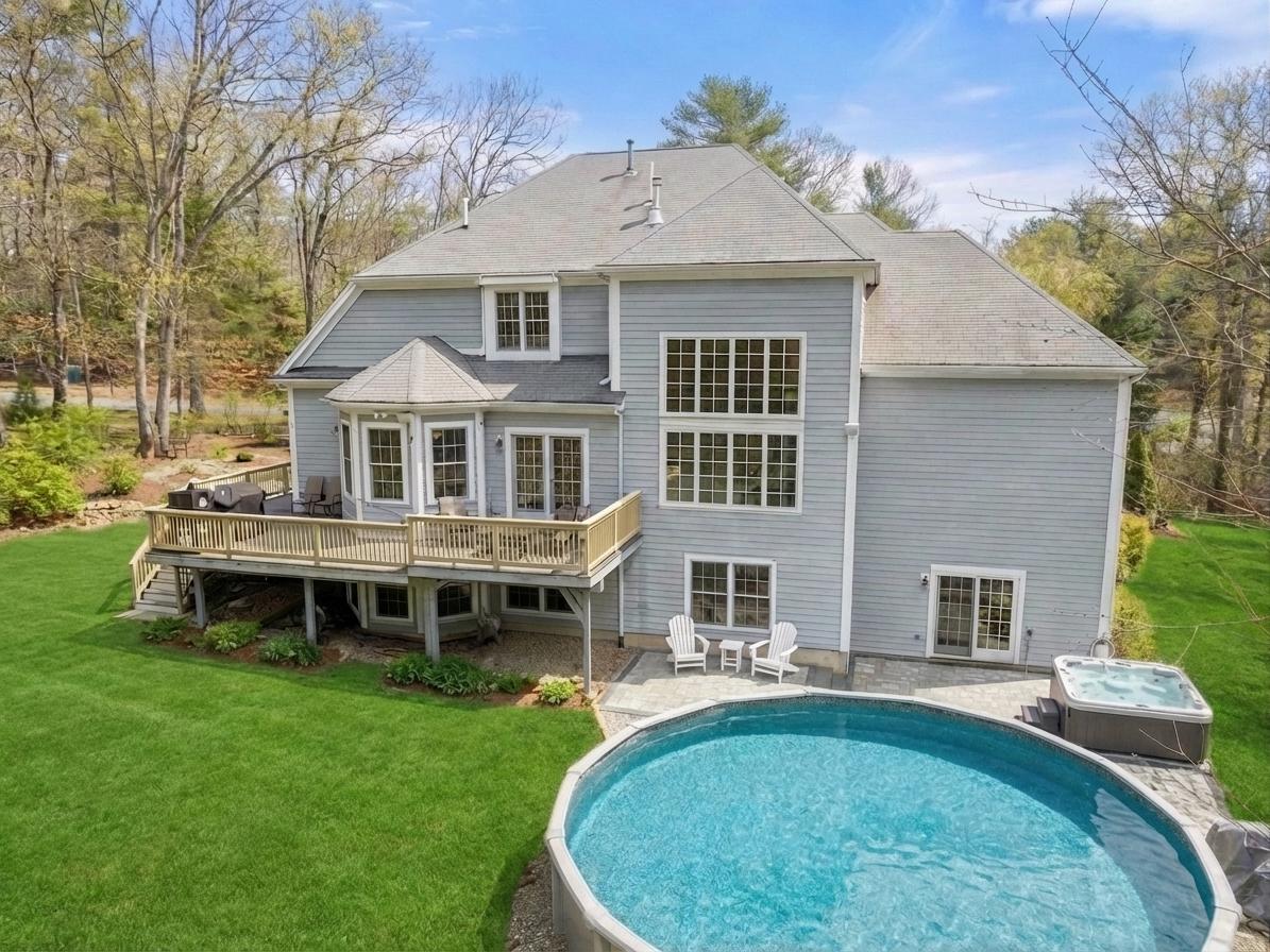 NEW PRICE! EXCEPTIONAL VALUE. Privately set on a wooded cul-de-sac, this custom Colonial blends everyday comfort with resort-style living. Set on 4+ acres with expansive lawn, mature plantings, and irrigation, the outdoor spaces shine: featuring a wraparound deck, patio, hot tub, and heated 24-ft above-ground pool, creating your own private retreat.